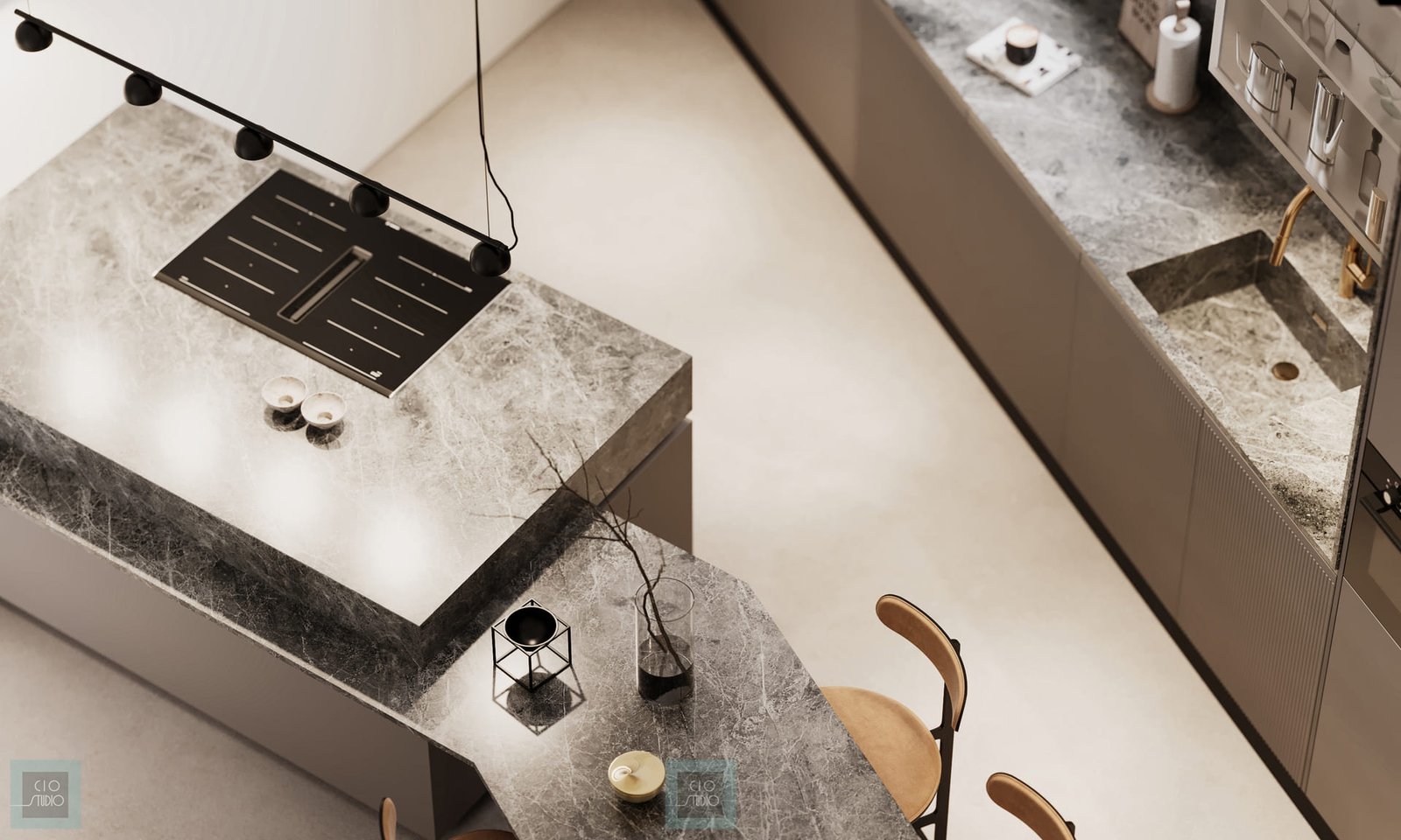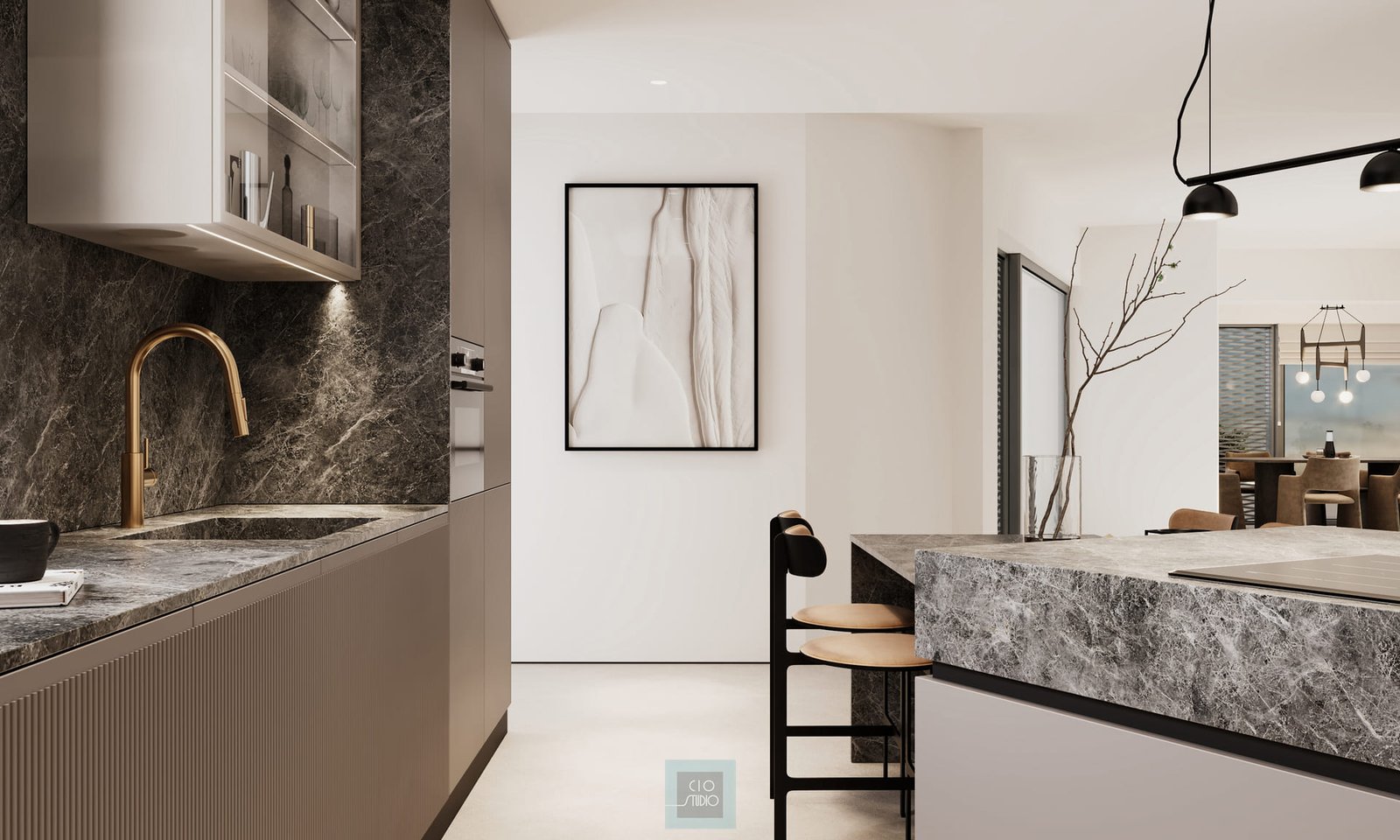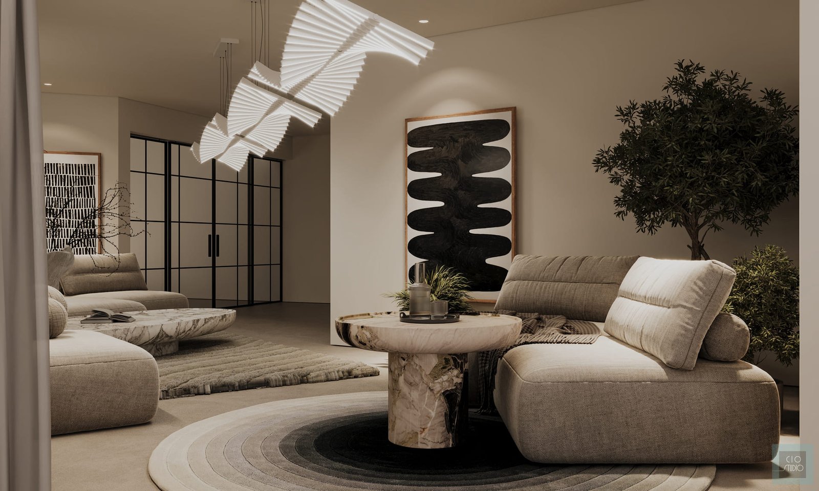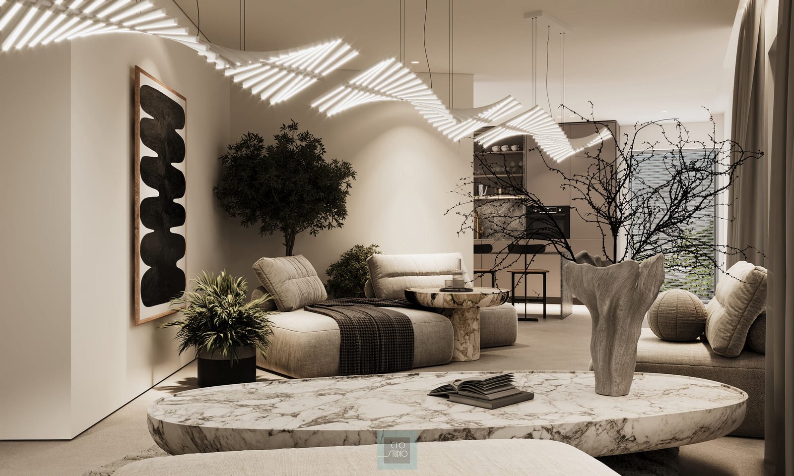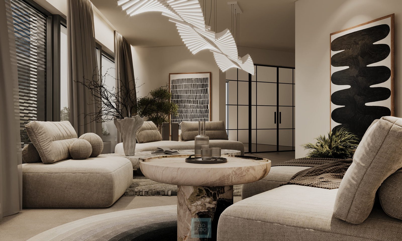 Pentru acest proiect, am ales un design modern, cu elemente uimitoare sofisticate și un mobilier din marmură. Zona de living este bine definită și impresionează prin rafinamentul detaliilor, oferind un spațiu contemporan și elegant.